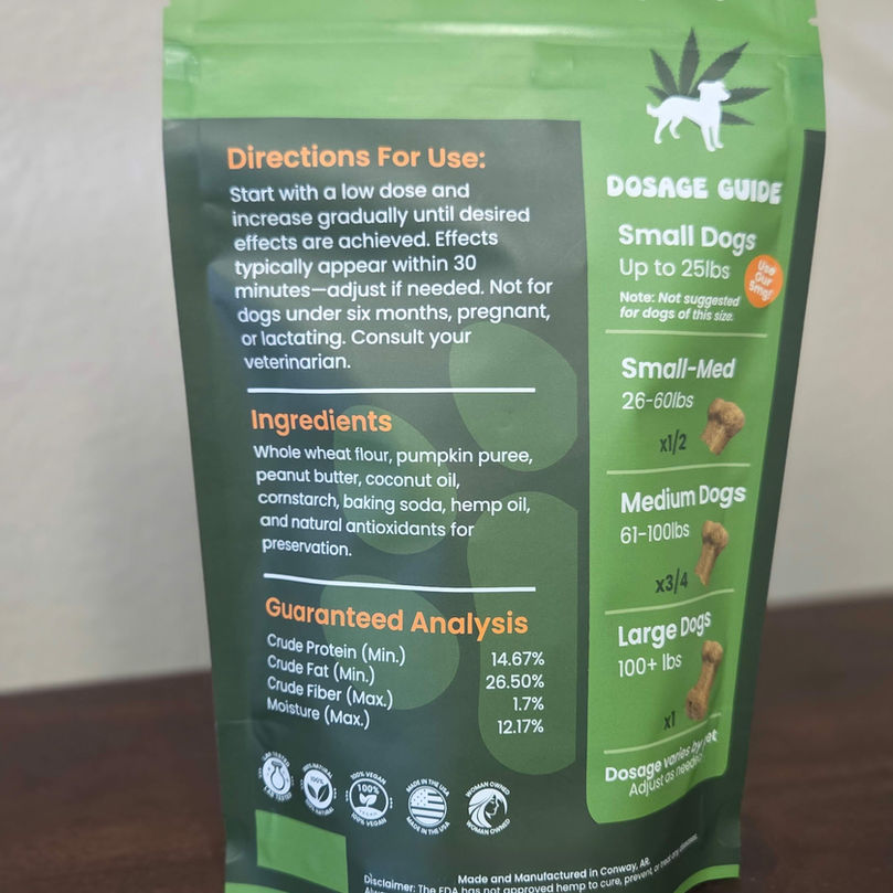 These peanut butter and pumpkin treats are infused with hemp and coconut oil to support your dog’s overall wellness. Each 4oz bag contains 30 treats, with 20mg of total phytocannabinoids per treat. Carefully crafted with a complex blend of cannabinoids and terpenes, these treats are designed to encourage the entourage effect and promote your pet’s well-being.